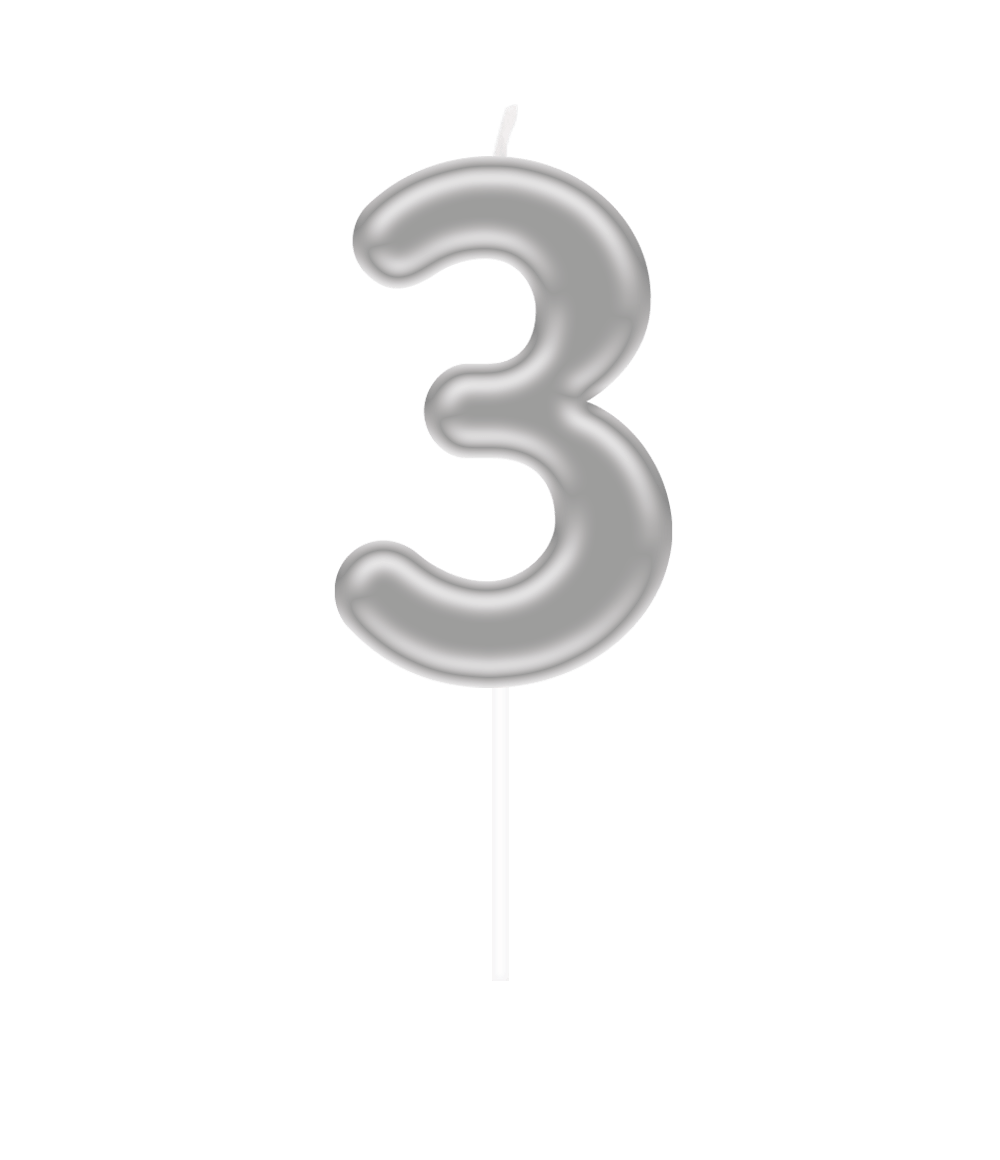 Célèbre toute étape importante avec style grâce à cette bougie numérique argentée "3". Parfaite pour marquer les âges, les numéros d'anniversaire ou d'autres occasions spéciales. La couleur argentée brillante fait ressortir la bougie sur n'importe quel gâteau ou cupcake.