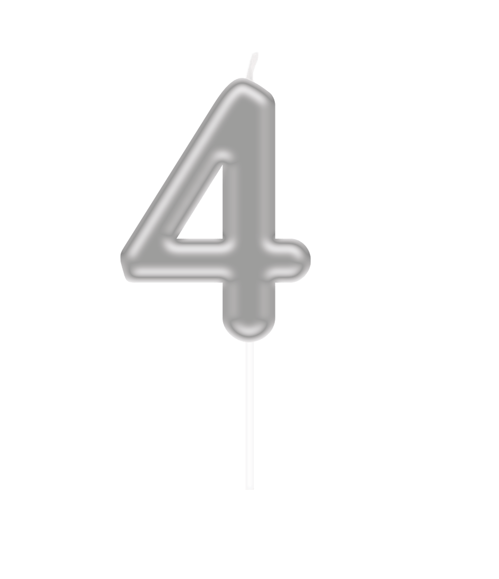 Célèbre chaque étape importante avec style grâce à cette bougie numérique argentée "4". Parfaite pour marquer les âges, les numéros d'anniversaire ou d'autres occasions spéciales. La couleur argentée brillante fait ressortir la bougie sur n'importe quel gâteau ou cupcake.