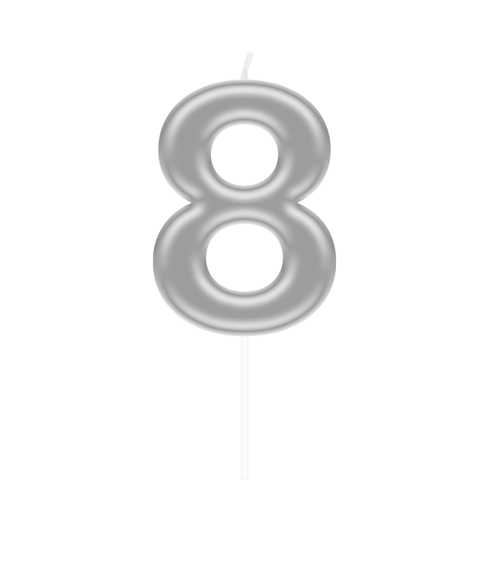 Célèbre toute étape importante avec style grâce à cette bougie numérique argentée "8". Parfaite pour marquer les âges, les numéros d'anniversaire ou d'autres occasions spéciales. La couleur argentée brillante fait ressortir la bougie sur n'importe quel gâteau ou cupcake.