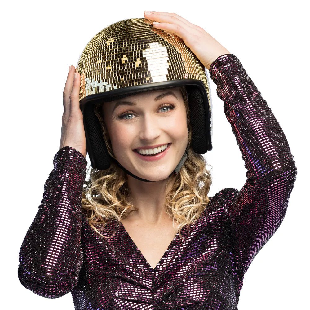 Impressionne n'importe quelle fête avec ce casque disco doré qui attire tous les regards. Idéal pour les foul parties, les fêtes à thème des années 70/80 ou le carnaval ! Les miroirs dorés étincelants donnent à ta tenue un look de fête instantané. Grâce à la sangle réglable, le casque reste bien en place, même pendant les mouvements de danse les plus fous.
