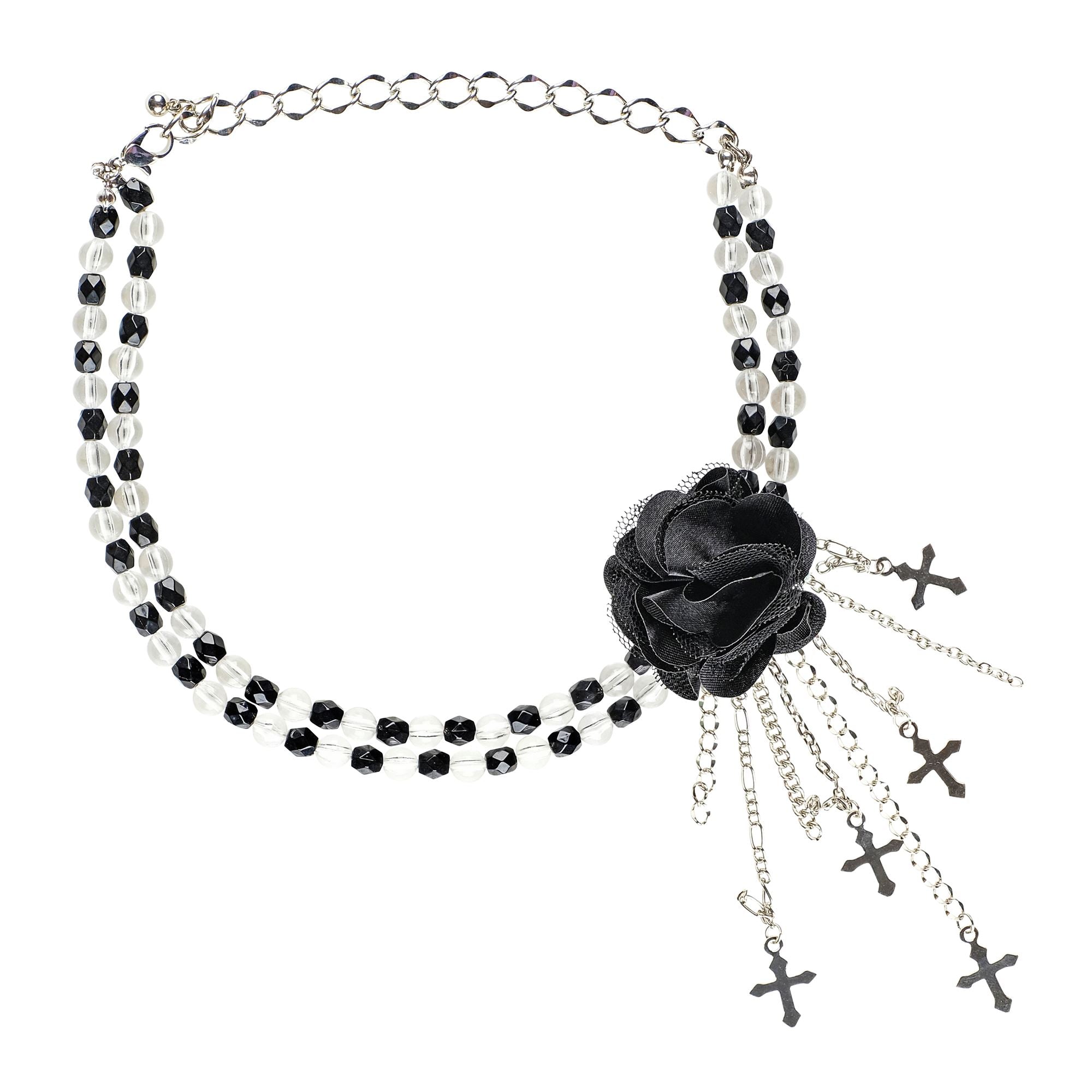 Collier d'Halloween noir avec rose
