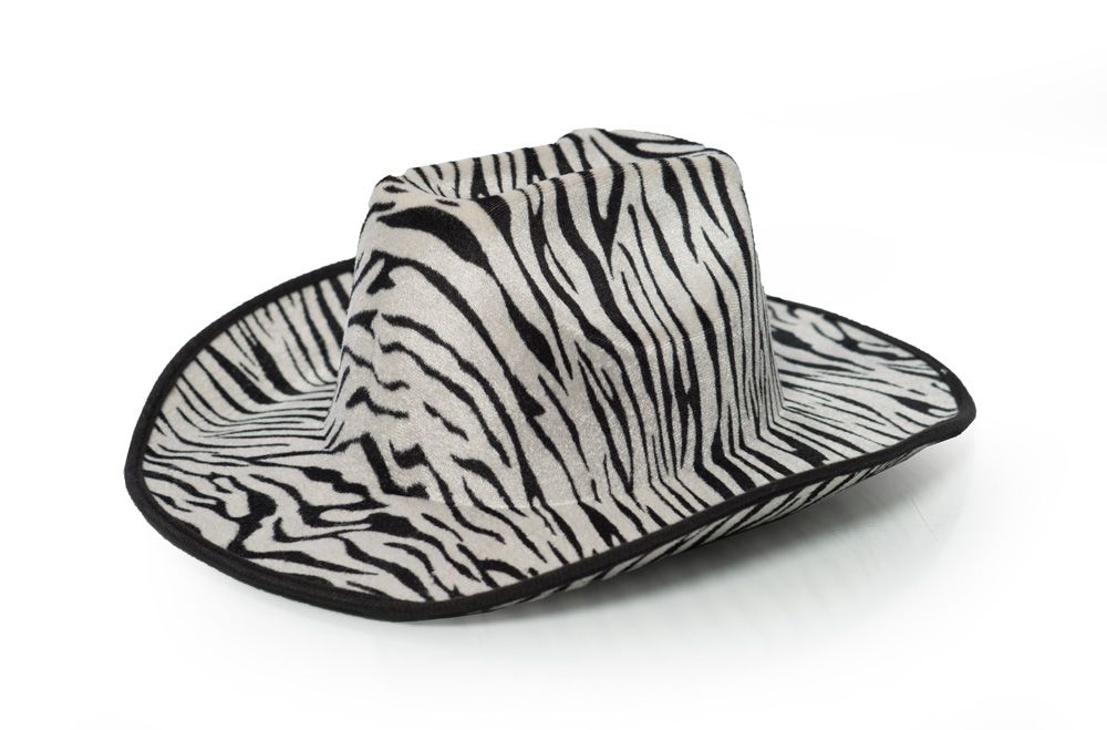 Le chapeau de cow-boy avec imprimé zébré en noir et blanc est un accessoire accrocheur et ludique qui se marie parfaitement avec les tenues de western, de fête et à thème. L'imprimé zébré contrastant attire tous les regards, idéal pour le carnaval et d'autres occasions de se déguiser.