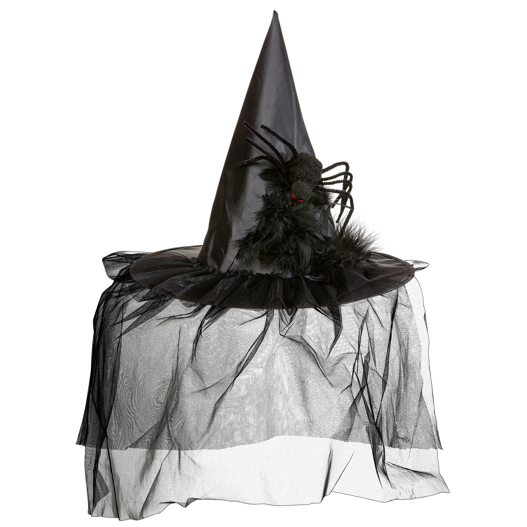 Chapeau de sorcière d'Halloween avec voile et araignée