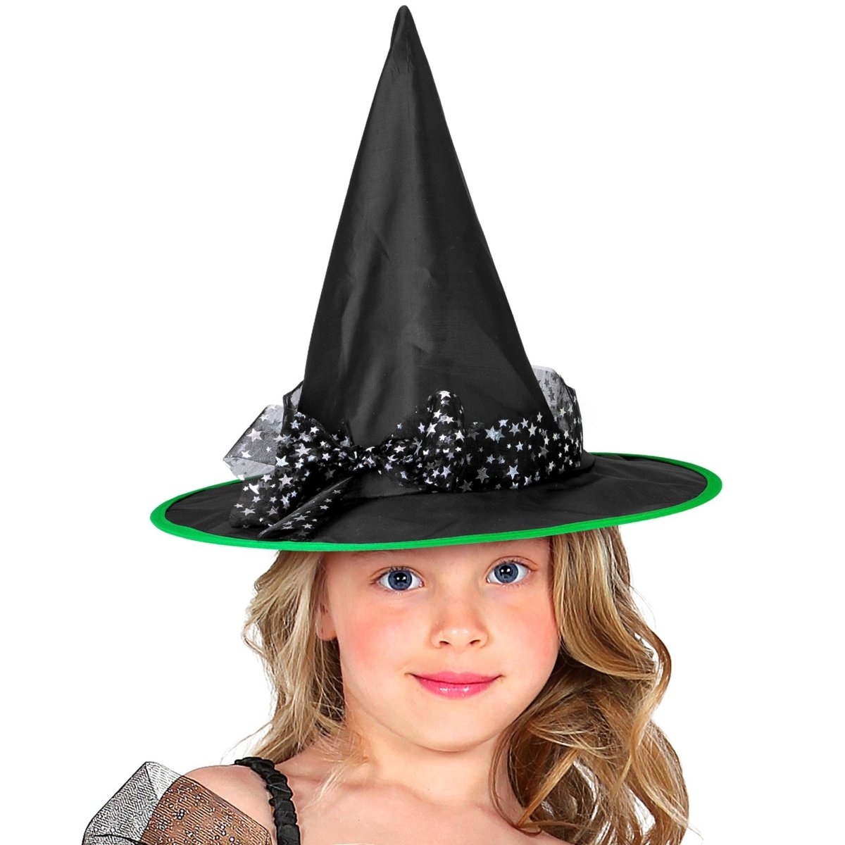 Chapeau de sorcière d'Halloween Étoiles noires et argentées