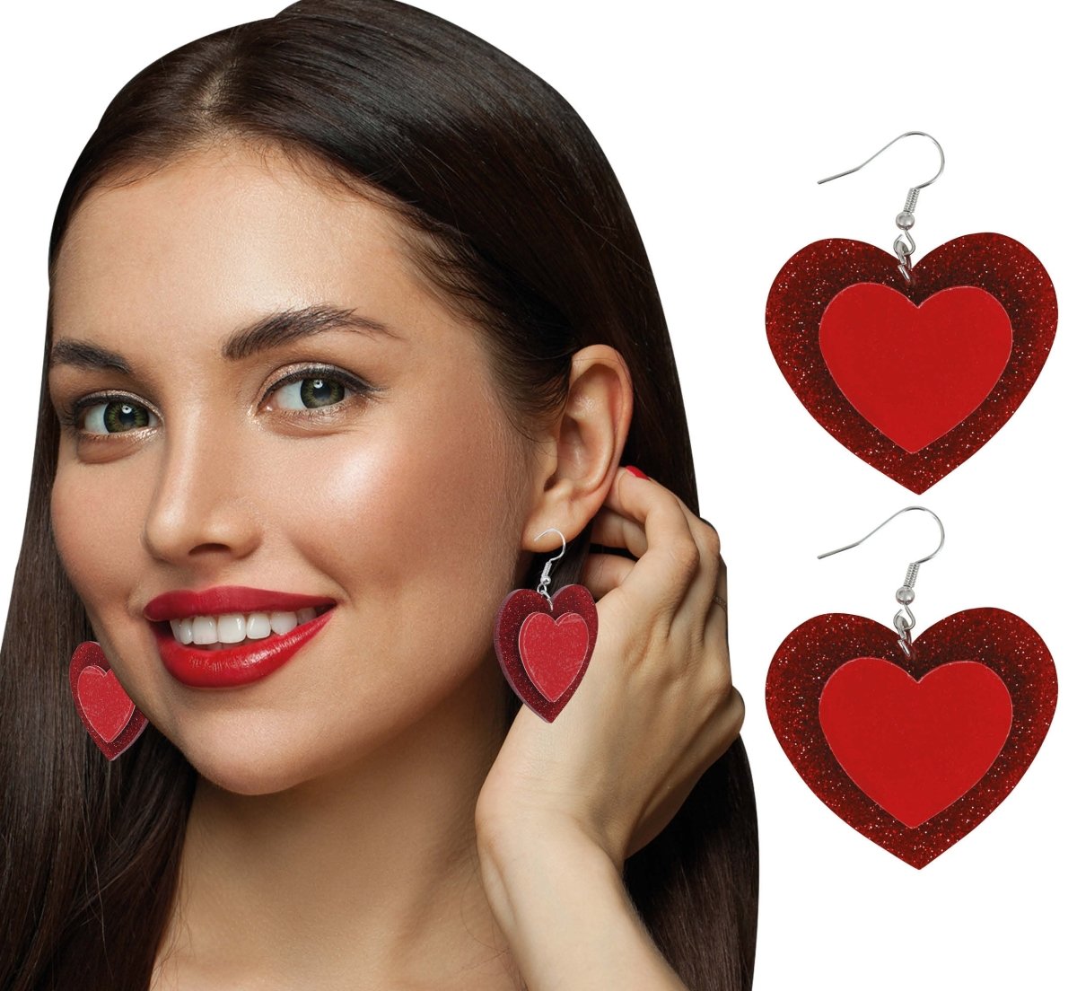 Boucles d'oreilles Coeurs Rouge Pailleté