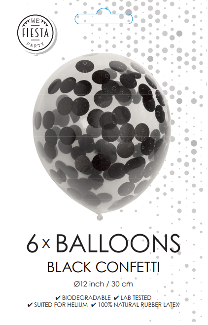 Ballons Confetti Noirs 30cm 6pcs