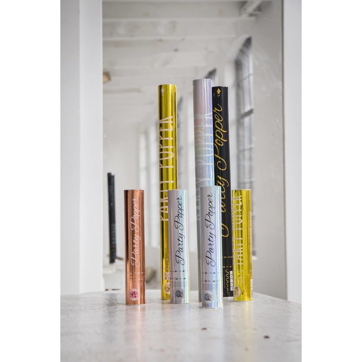 Canon à confettis Or XL - 57cm. Contenu : 1 canon à confettis. Couleur : couleur or. À utiliser par exemple lors des fêtes/occasions suivantes : anniversaire, fête d'enfants et anniversaire. L'article mesure 57 cm de long. L'article est fabriqué en plastique.