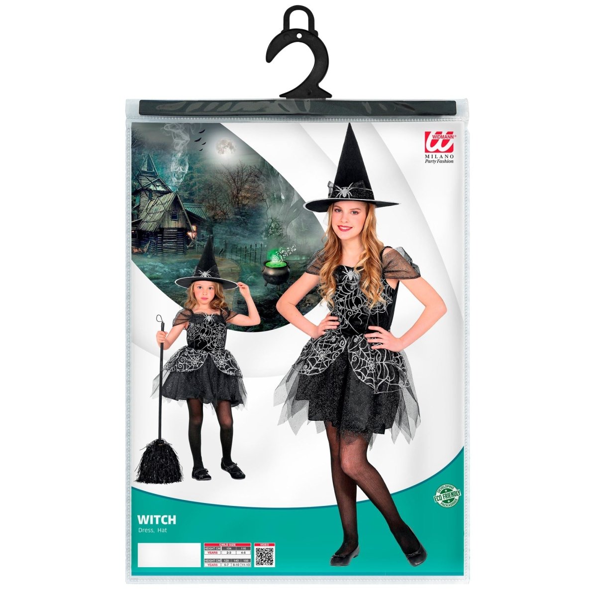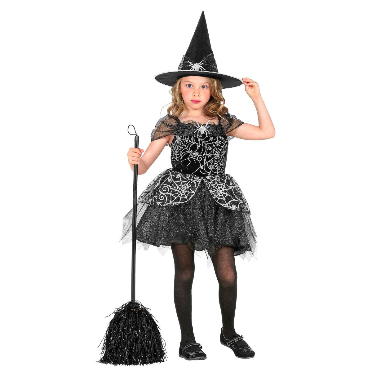 Costume de sorcière noir argenté fille araignée