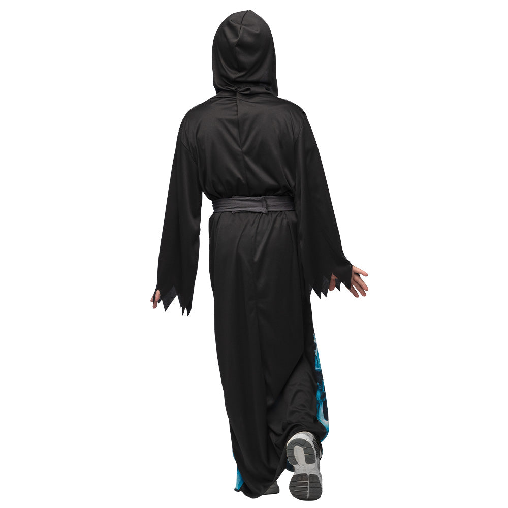 Ce costume effrayant pour les garçons est fortement recommandé pour les aventures de collecte de bonbons, les fêtes d'Halloween ou un défilé effrayant. Avec une robe sombre à capuche et un dessin enchanteur de visages de fantômes bleus, ce costume d'Halloween pour enfants est parfait pour faire une impression terrifiante et difficile.