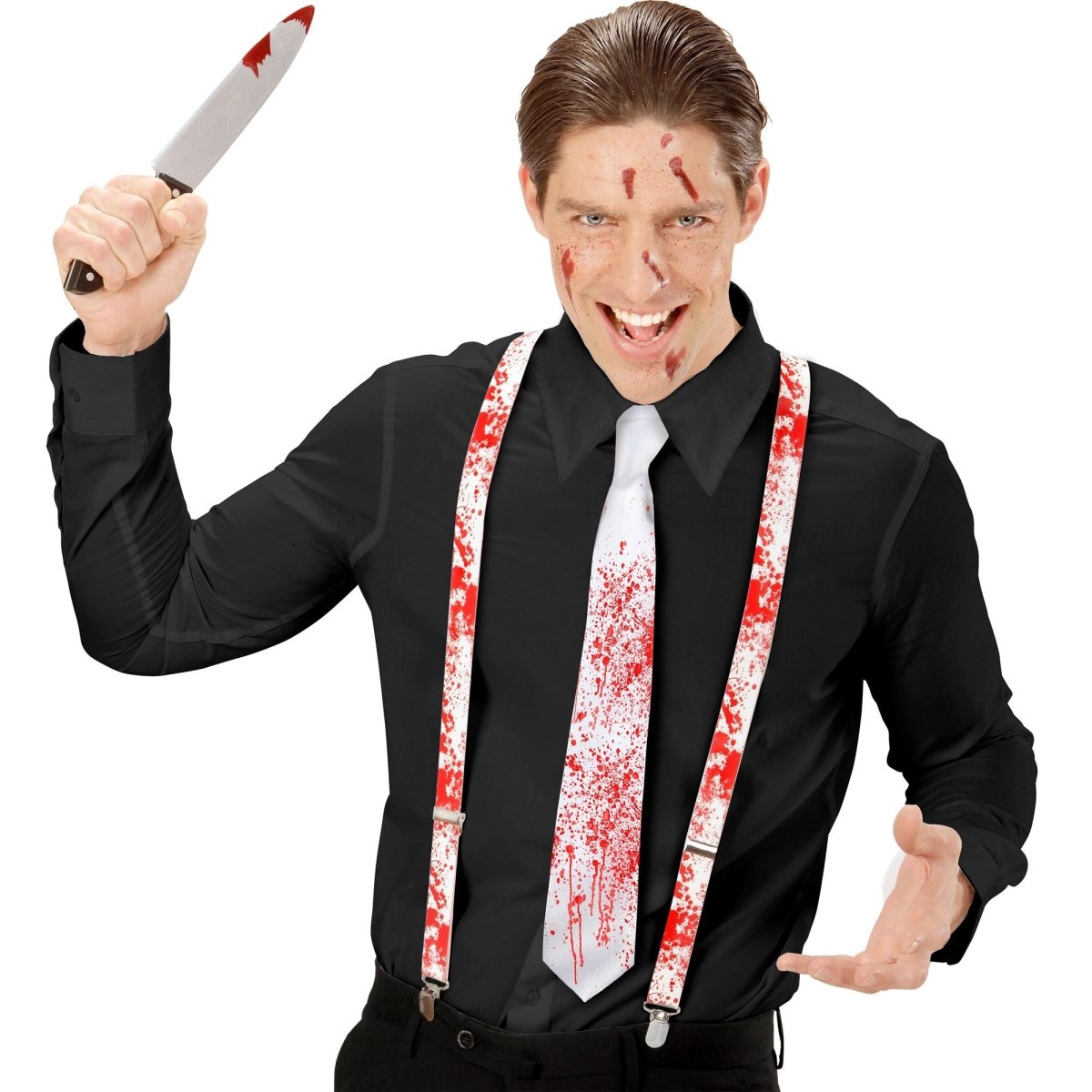 Ajoute une touche effrayante à ta tenue d'Halloween avec cette cravate sanglante en blanc avec des accents rouges. Parfaite pour les fêtes à thème, les déguisements d'horreur ou comme accessoire excitant pour les costumes.