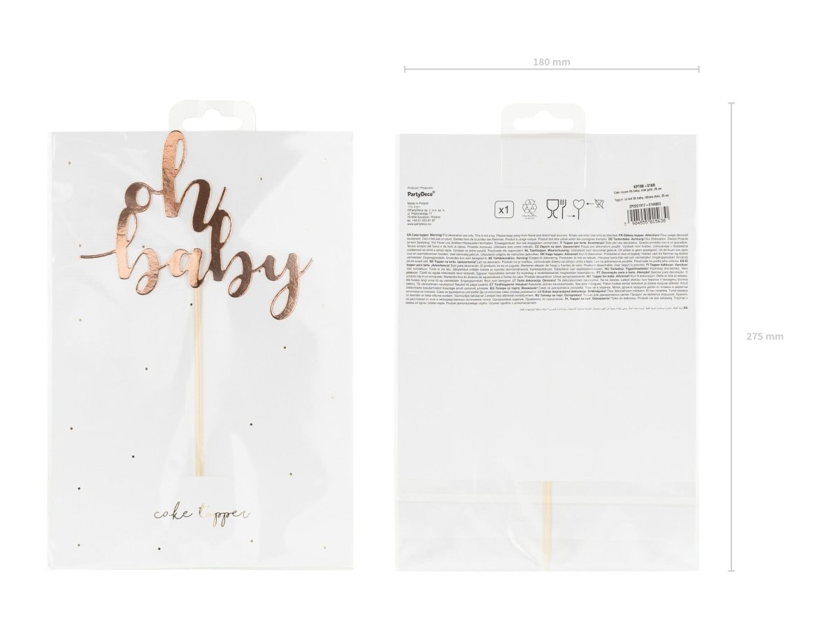 Décor de gâteau rose et or Oh Baby 25cm