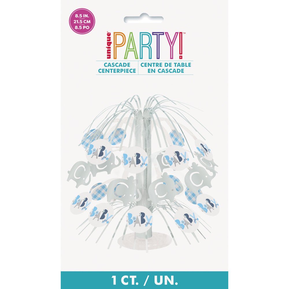 Décoration de table bébé éléphant bleu 21 cm