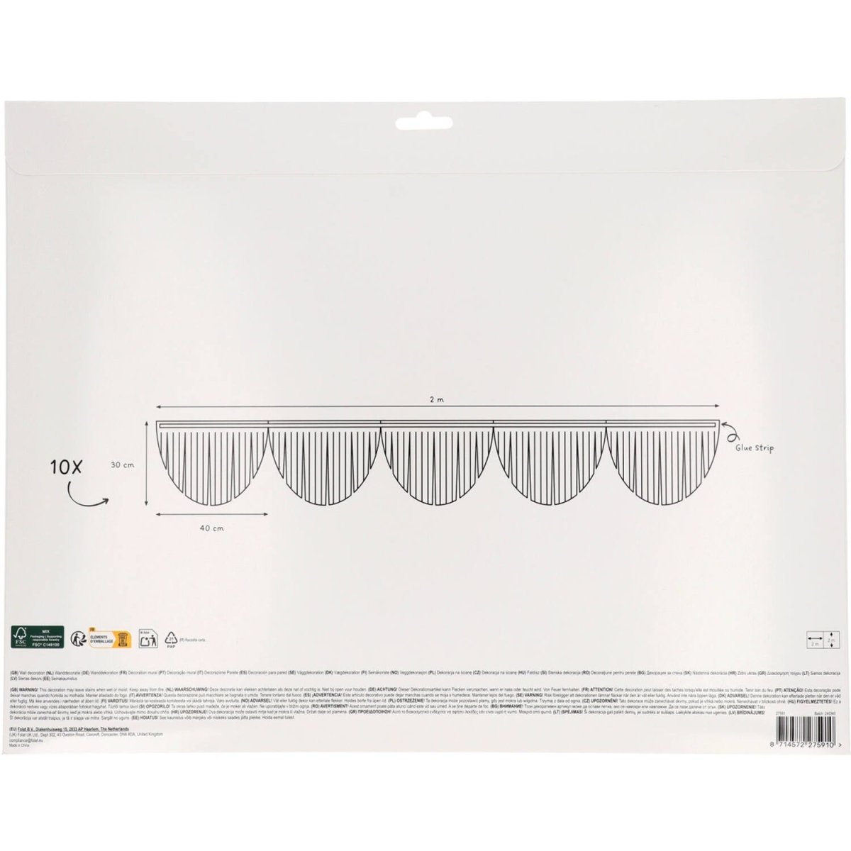 Jovial et élégant ! Toile de fond à franges pour la fête - Pastel - 2 x 2 m. Contenu : 10 bandes de franges, chacune avec 5 couleurs. À utiliser par exemple lors des fêtes/occasions suivantes : Anniversaire, Fête à thème. Crée les plus belles toiles de fond avec ces bandes à franges. Il y a 10 bandes détachées, chaque bande a 5 couleurs, mesure 200 x 30 cm et a un bord adhésif pratique. 1 couleur a la forme d'un demi-cercle et mesure environ 40 x 30 cm. L'ensemble des bandes mesure environ 200 x 200 cm. Les couleurs sont : rose, jaune, turquoise, orange et irisé. Toutes les franges sont en papier, sauf celle qui est irisée, qui est en feuille d'aluminium. Cet article est fabriqué en papier et en feuille d'aluminium.