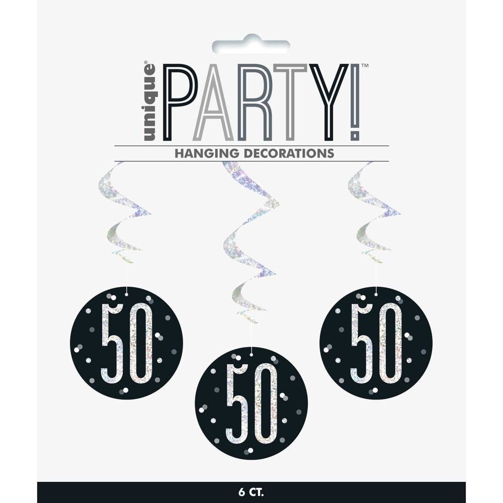 Décoration suspendue 50 ans Noir 81cm 6pcs