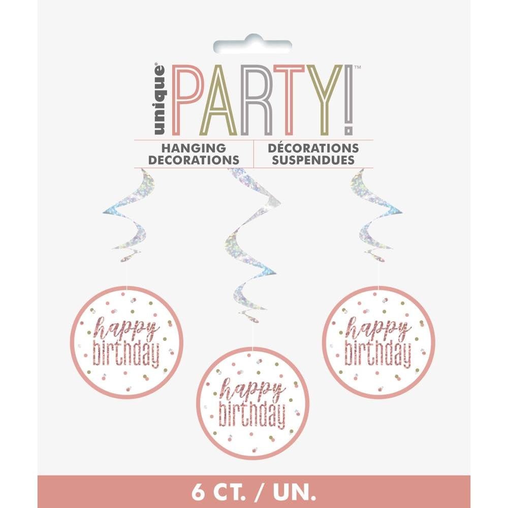Décoration suspendue Happy Birthday Rose Gold 81cm 6pcs