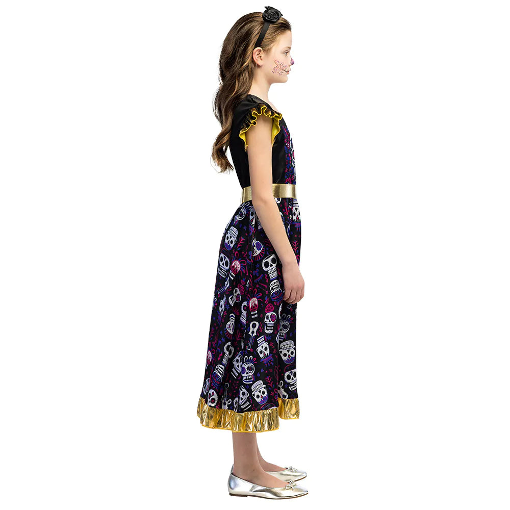 Dia De Los Muertos Dress Girl Ruffle Sleeves (Robe Dia de Los Muertos)