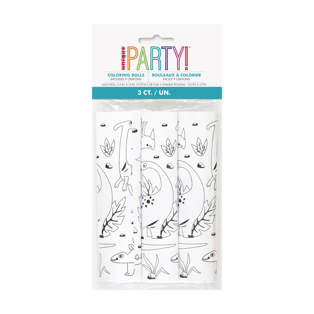Rouleaux de feuilles à colorier Dino avec crayons 3pcs