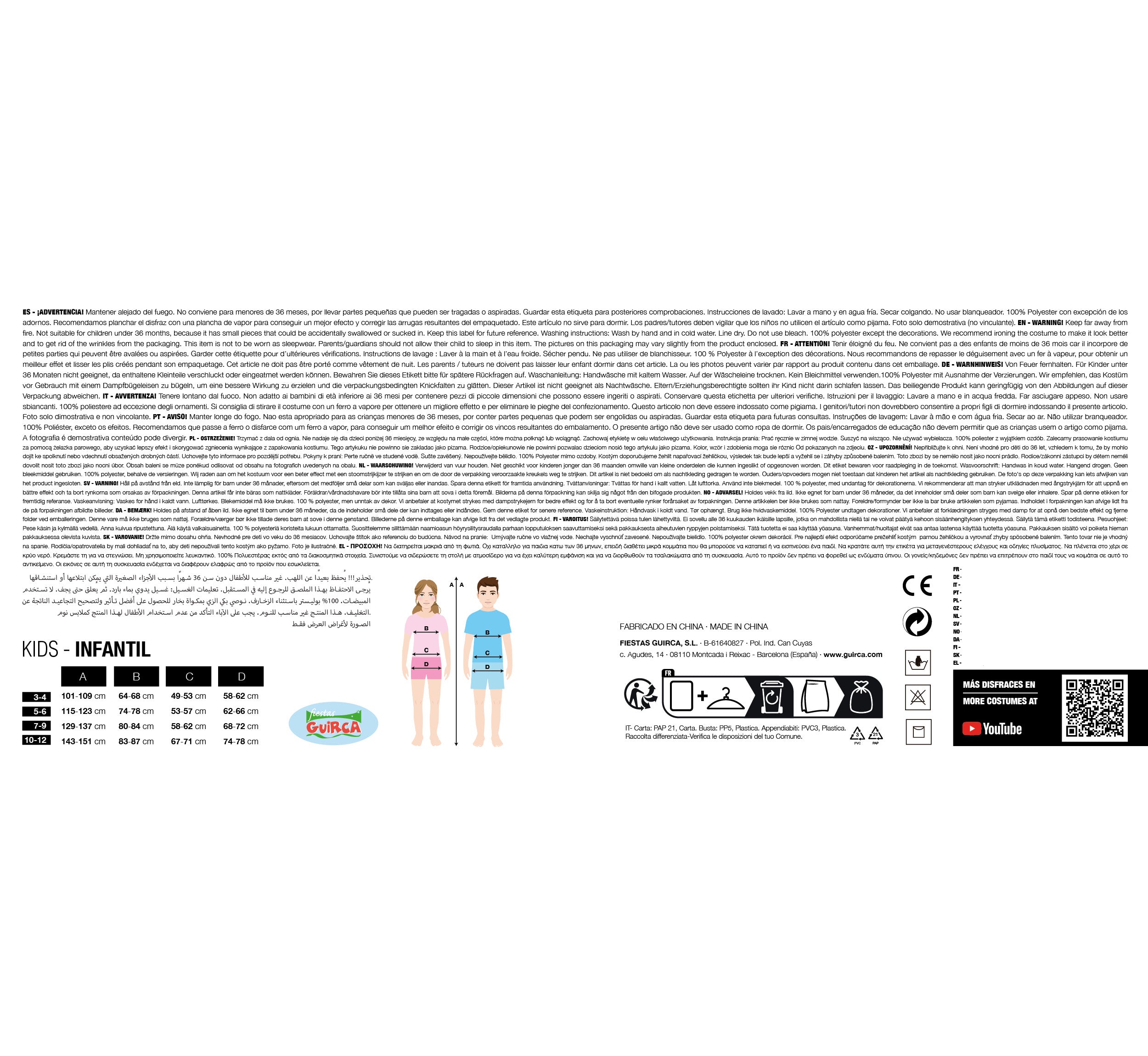 Contenu de l'emballage: 1 costume