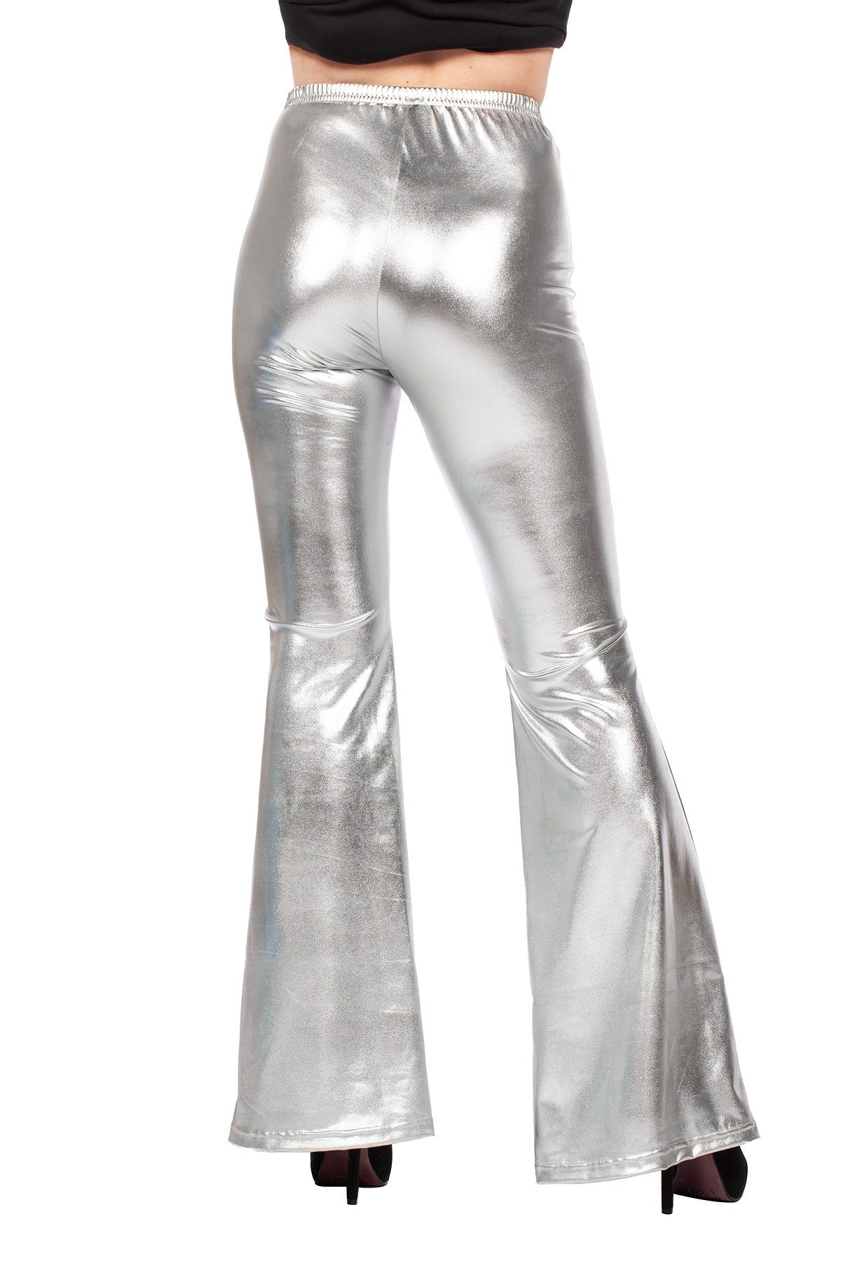 Ajoute une touche glamour à ta tenue avec ces jambières évasées argentées. Parfait pour les fêtes, les festivals ou les soirées à thème avec un style rétro.