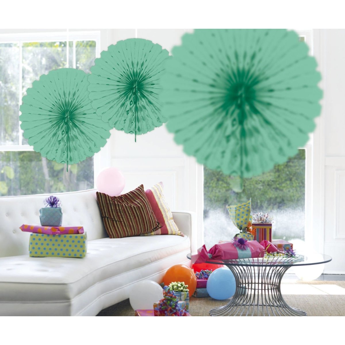 Éventail en papier vert menthe 45 cm