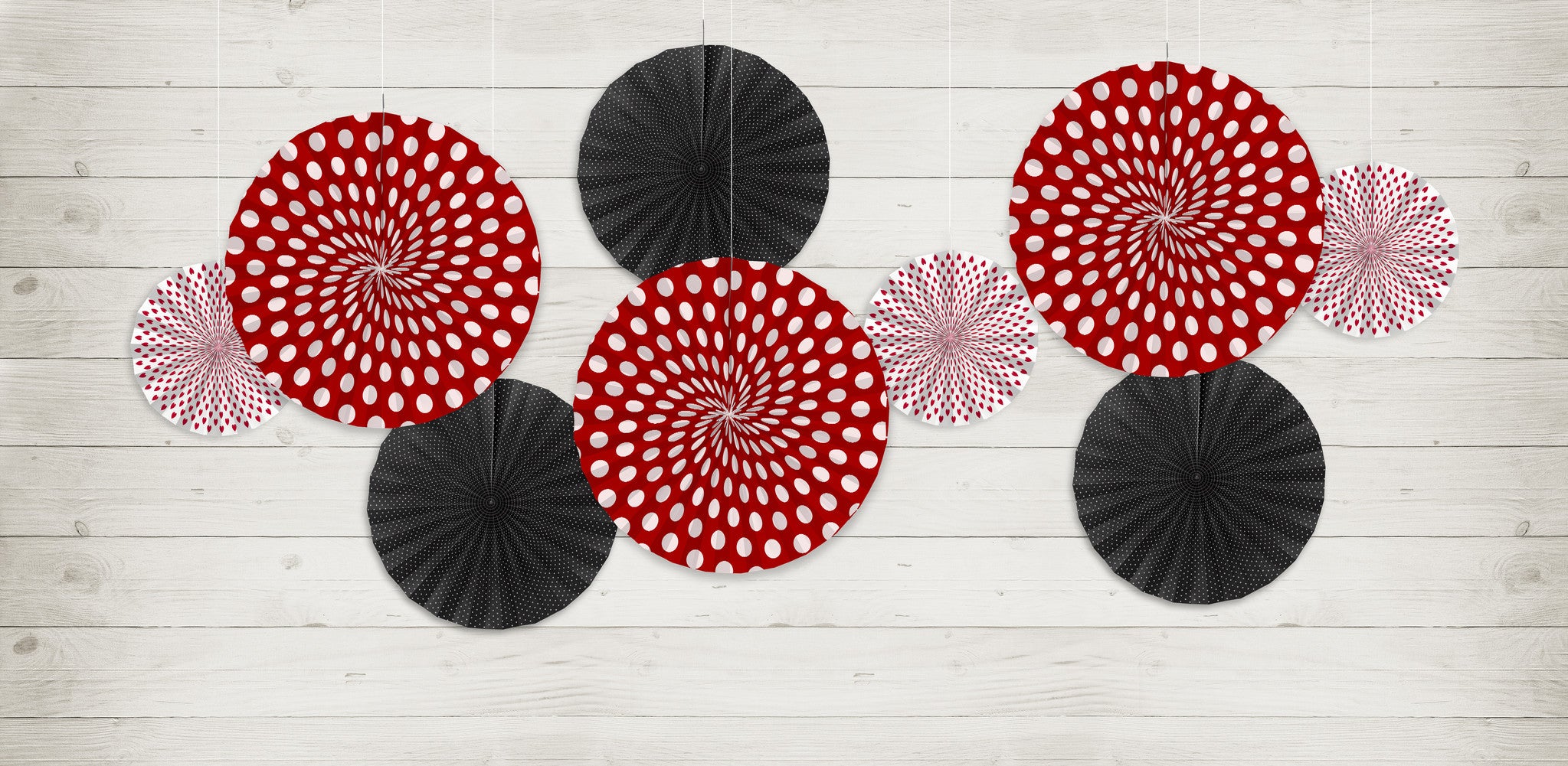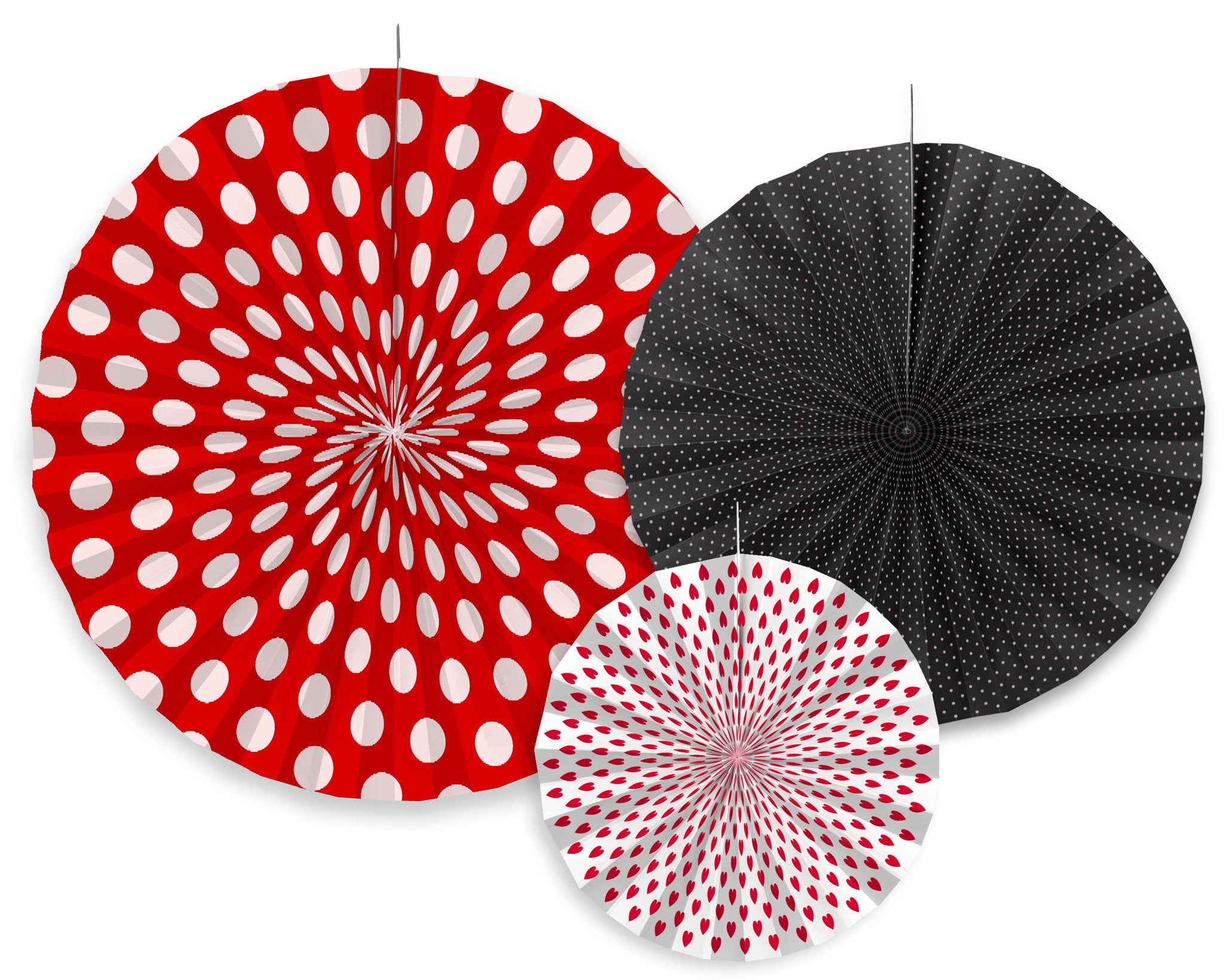 Eventails en papier Rouge Noir Set 23-40cm 3 pièces