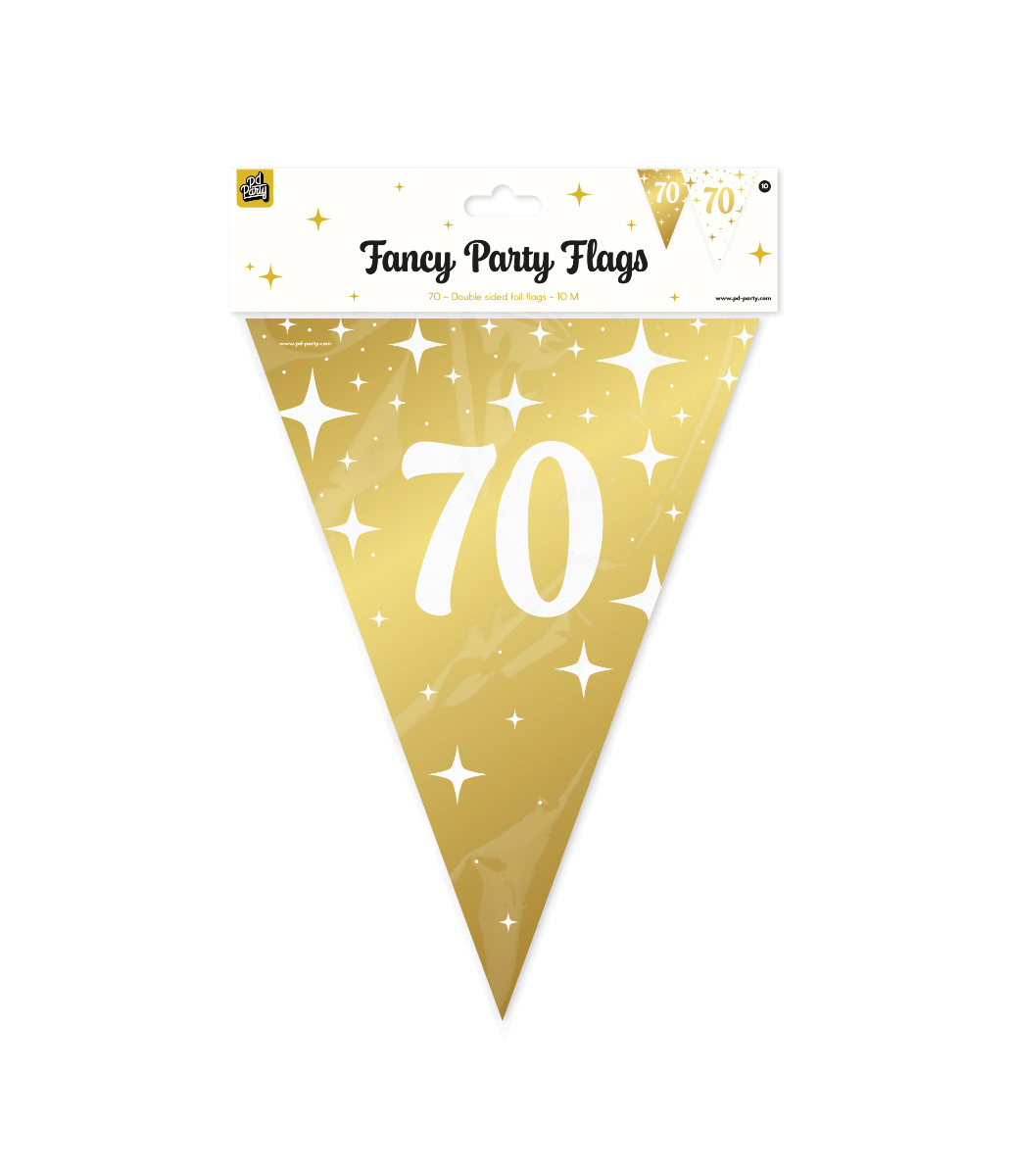 Les Fancy Party Flags foil - 70 peuvent être parfaitement combinés avec nos ballons assortis ainsi qu'avec d'autres articles de fête de notre large gamme, afin que tu puisses créer sans effort une atmosphère festive et élégante.
