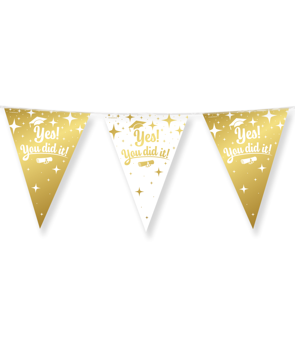 La feuille Fancy Party Flags - You did it ! est parfaitement combinée avec nos ballons assortis ainsi qu'avec d'autres articles de fête de notre large gamme, afin que tu puisses créer sans effort une atmosphère festive et élégante.