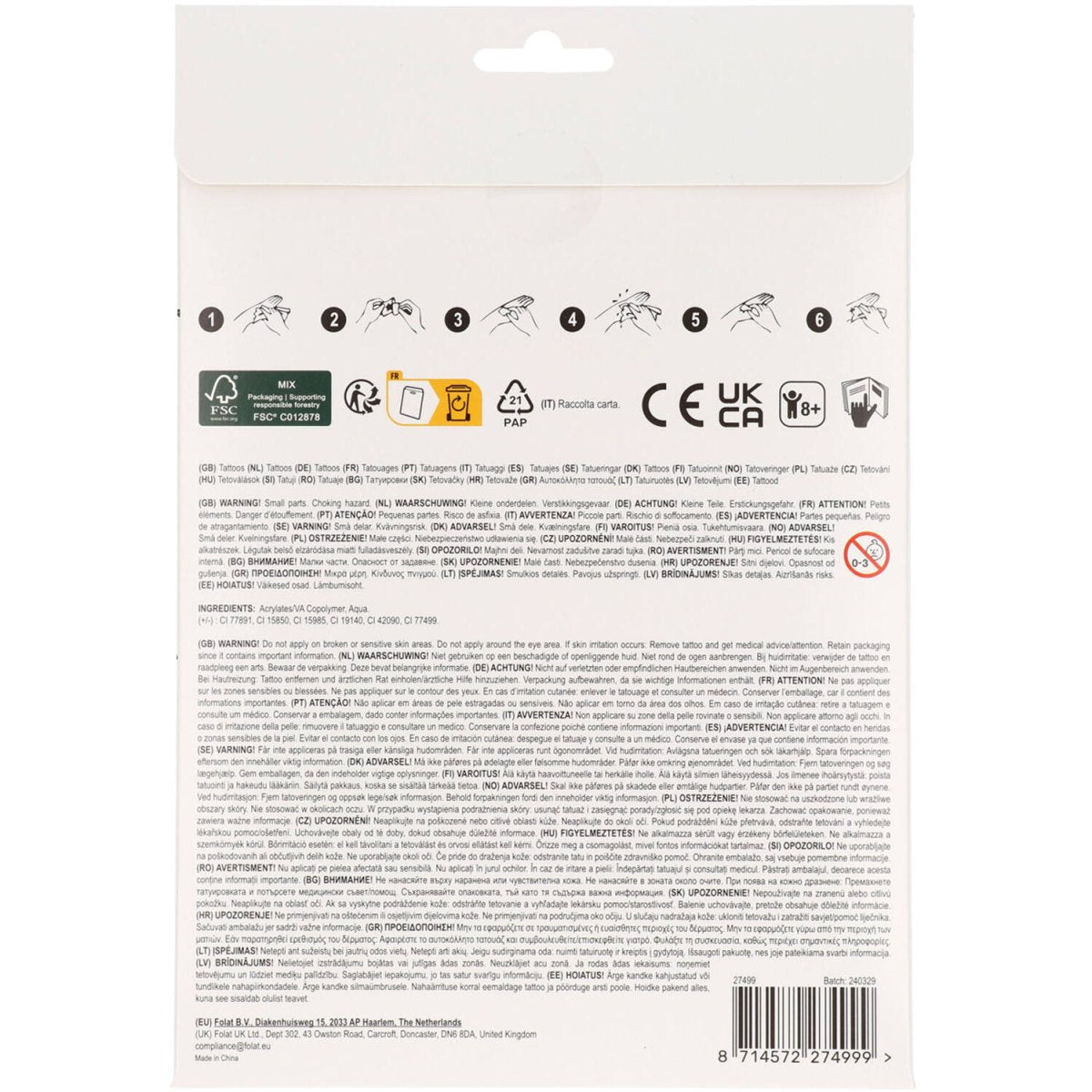 Contenu de l'emballage : tatouages