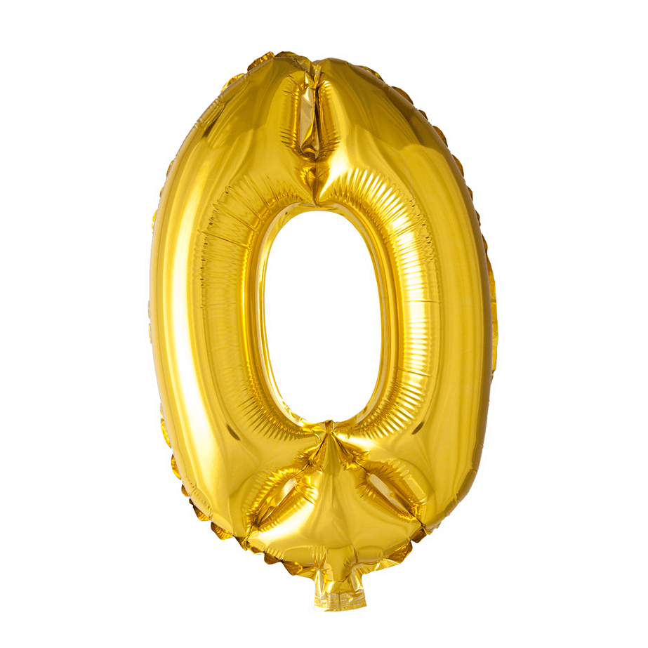 Ballon de baudruche Figure 0 Or 41cm avec paille