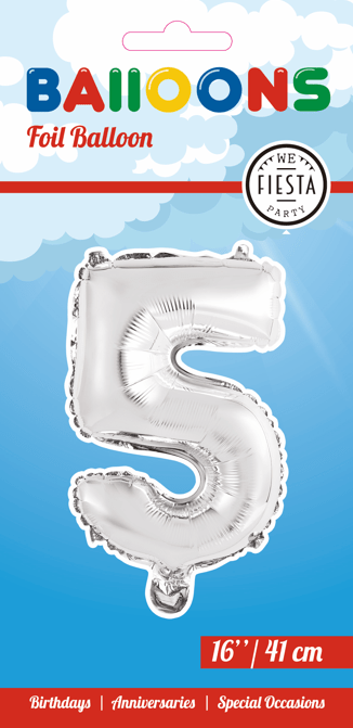 Ballon de baudruche Figure 5 Argent 41cm avec paille