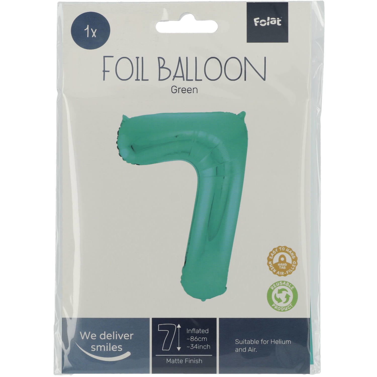 Belle grande montgolfière en aluminium du chiffre 7 dans une couleur vert métallisé mat. Contenu : 1 ballon en aluminium de 86 cm. Couleur : vert. Le ballon est livré avec des languettes de suspension pratiques, ce qui permet de l'accrocher facilement. À utiliser par exemple lors des fêtes/occasions suivantes : Anniversaire, Fête d'enfants et Anniversaire. Ce ballon en papier d'aluminium mesure 34 pouces/86 cm. L'article est fabriqué en feuille d'aluminium.