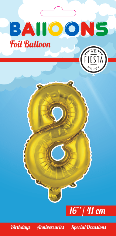 Ballon de baudruche Figure 8 Or 41cm avec paille