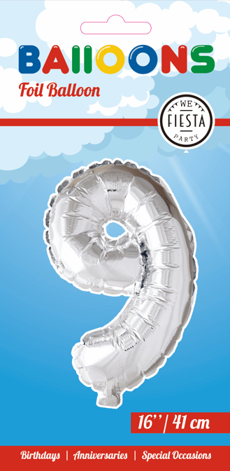 Ballon de baudruche Figure 9 Argent 41cm avec paille