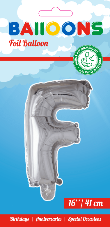 Ballon de baudruche Lettre F Argent 41cm avec paille