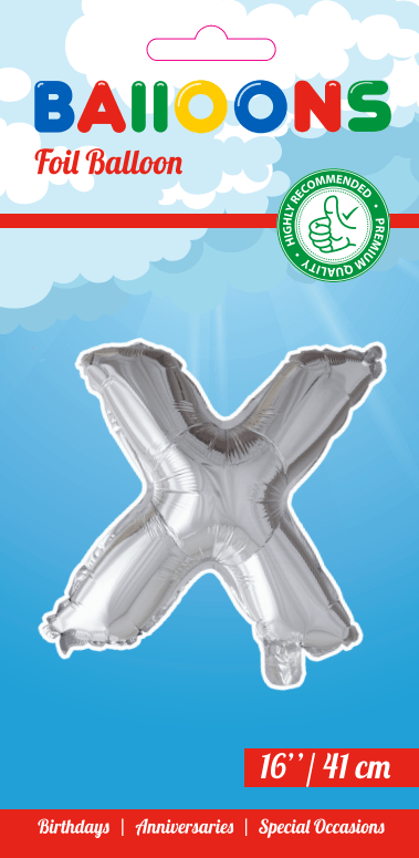 Ballon de baudruche Lettre x Argent 41cm avec paille