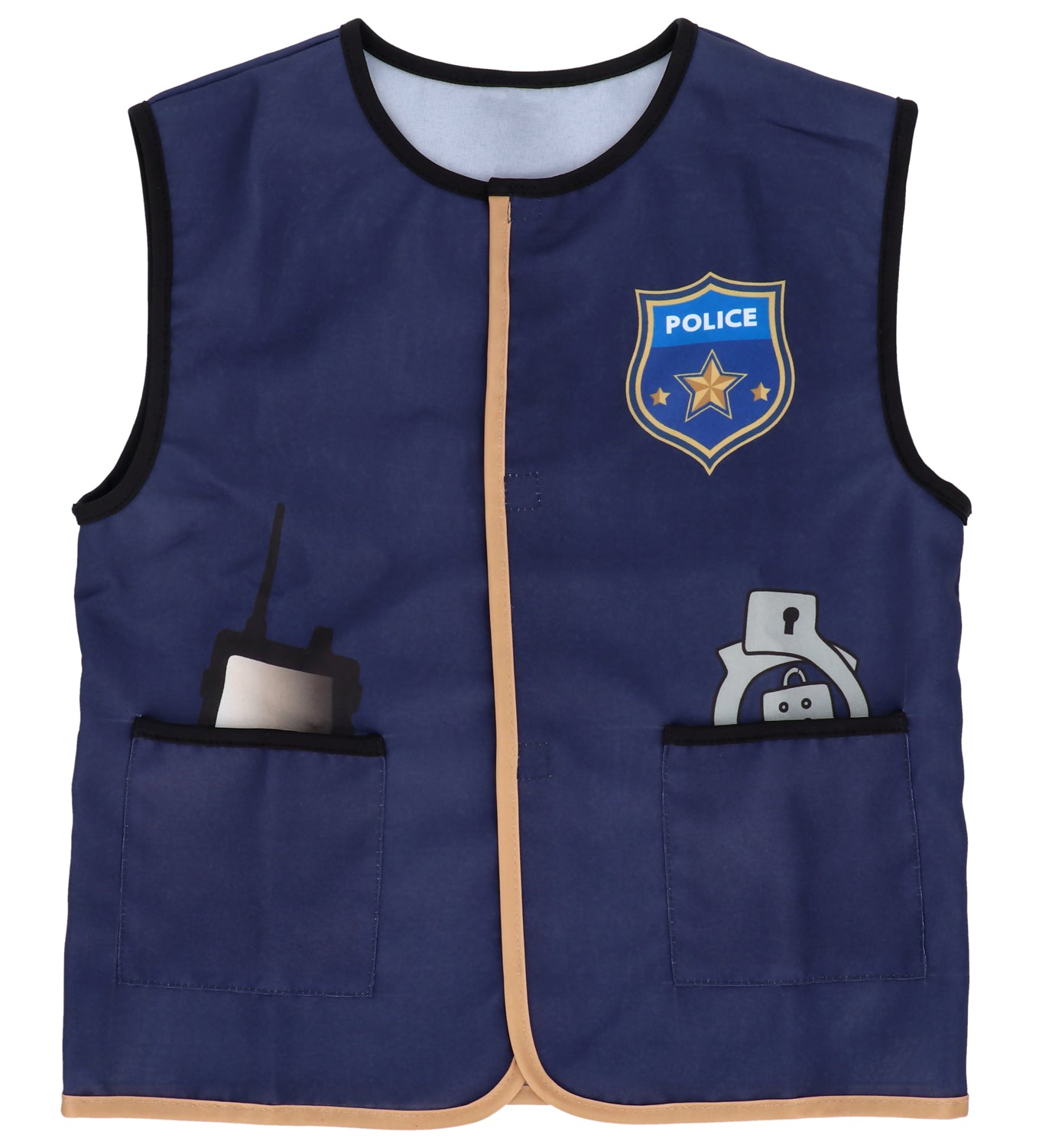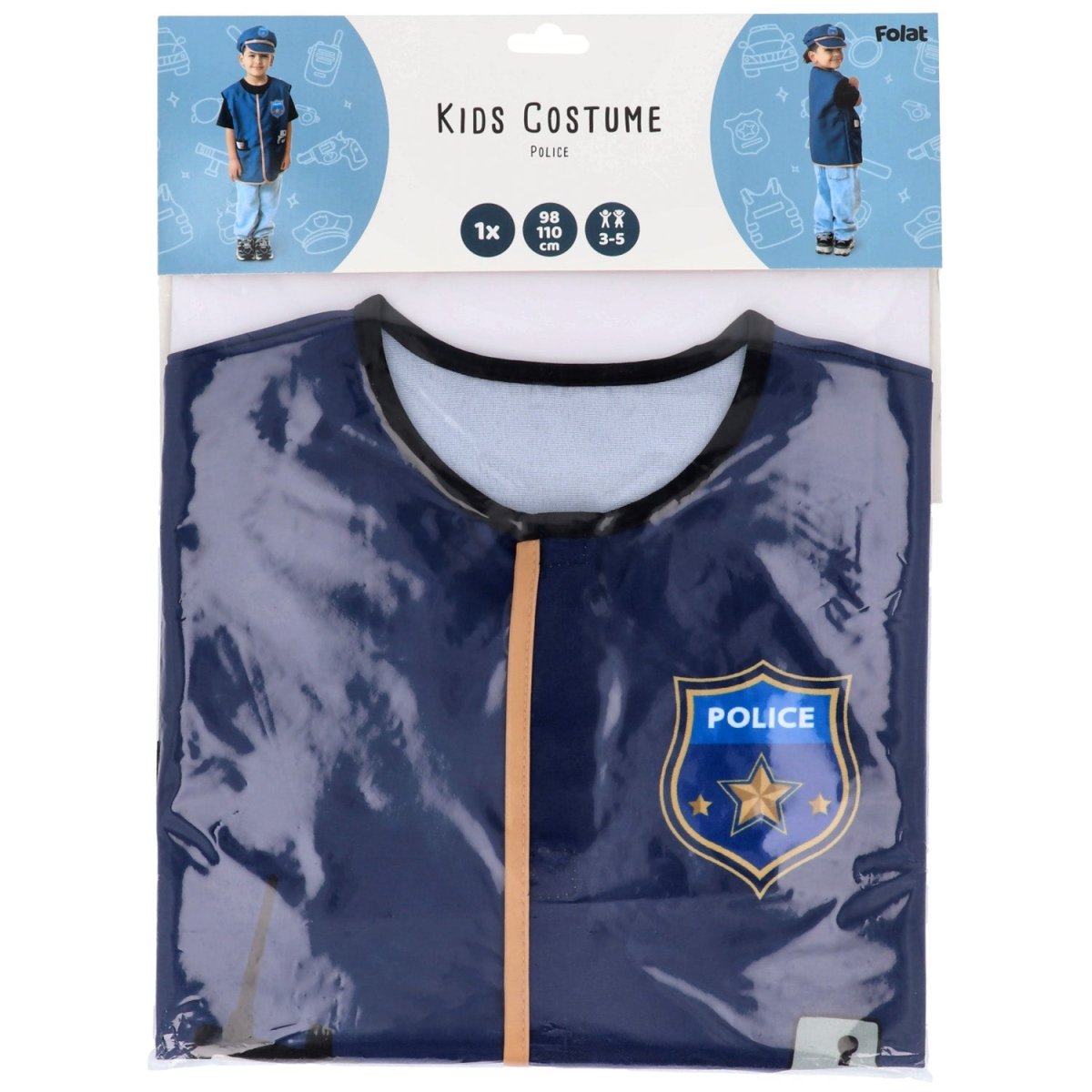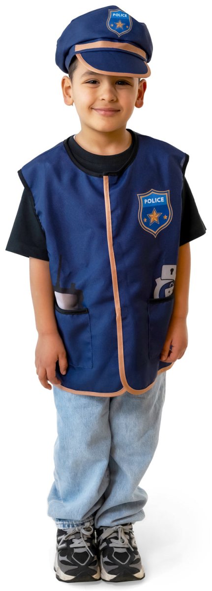 Contient 1 gilet de police sans manche et 1 casquette de police.
