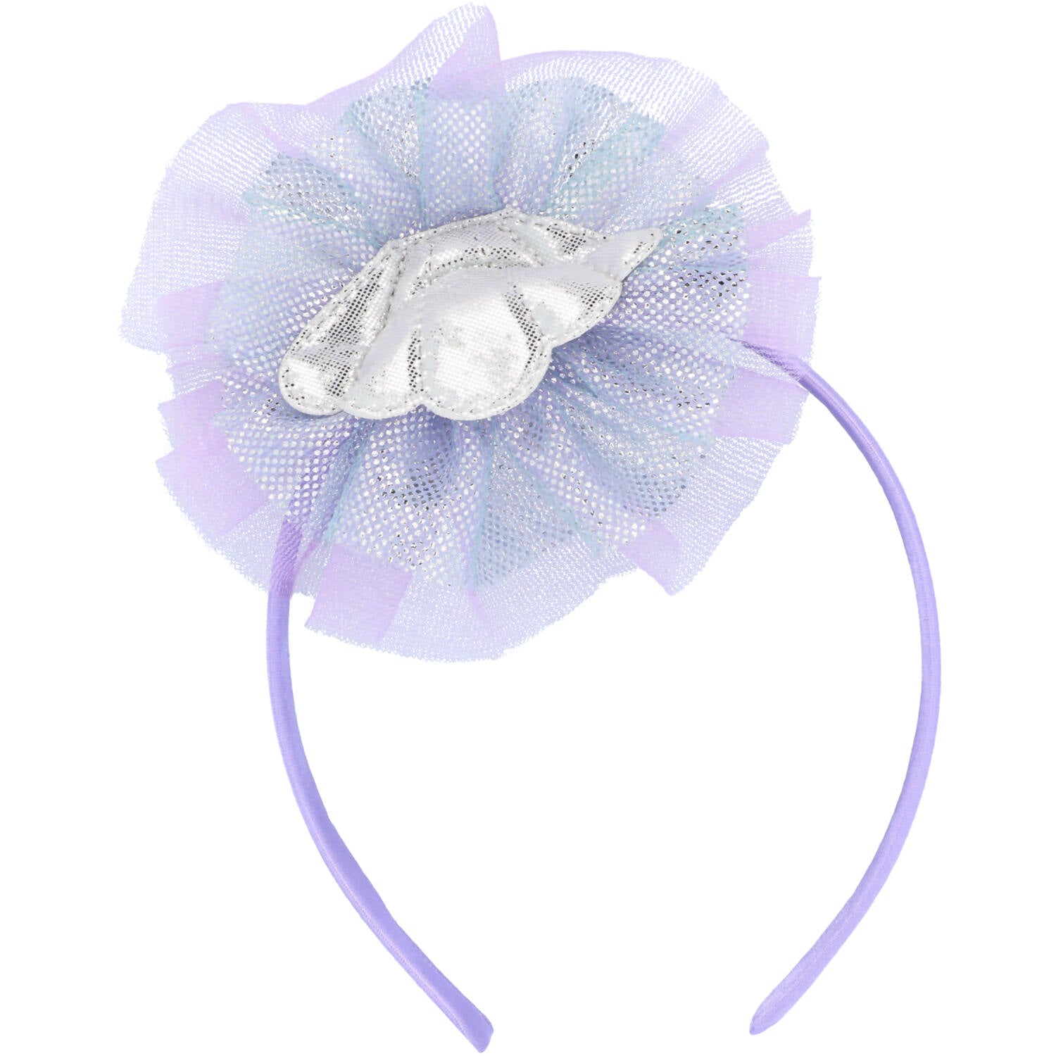 Taille terminée par un tulle irisé en forme de V, noué au centre par une pierre plastique irisée