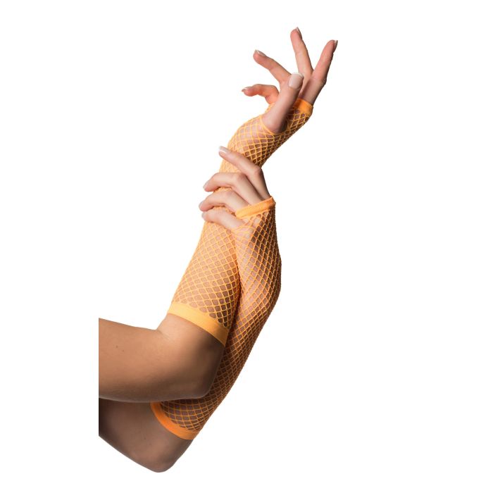 Gants sans doigts Longue résille Orange fluo