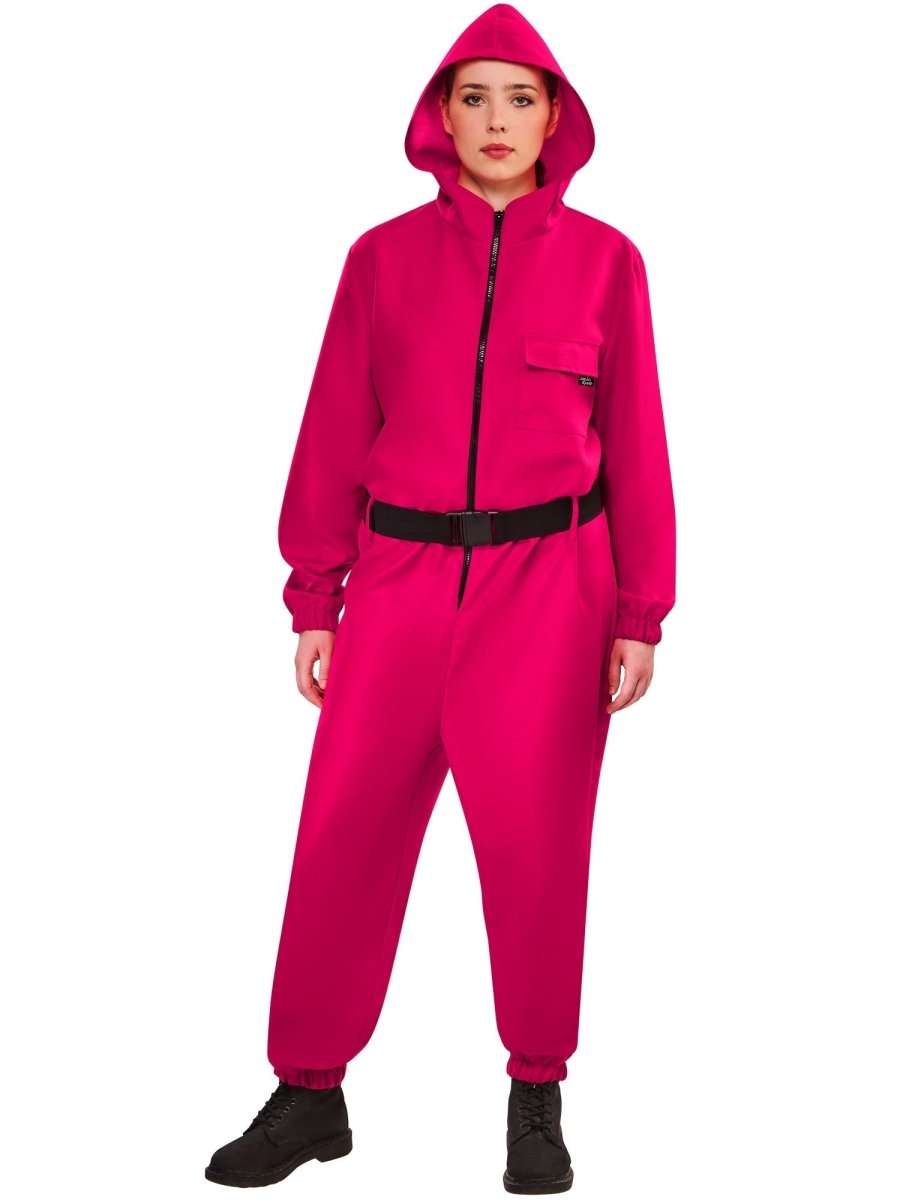 Honore le look emblématique des Gardes avec cette combinaison rouge saisissante, inspirée du succès mondial de Netflix Squid Game. Conçu avec une capuche impressionnante et une ceinture assortie, ce costume te transforme instantanément en l'un des inoubliables hommes de main de la série.