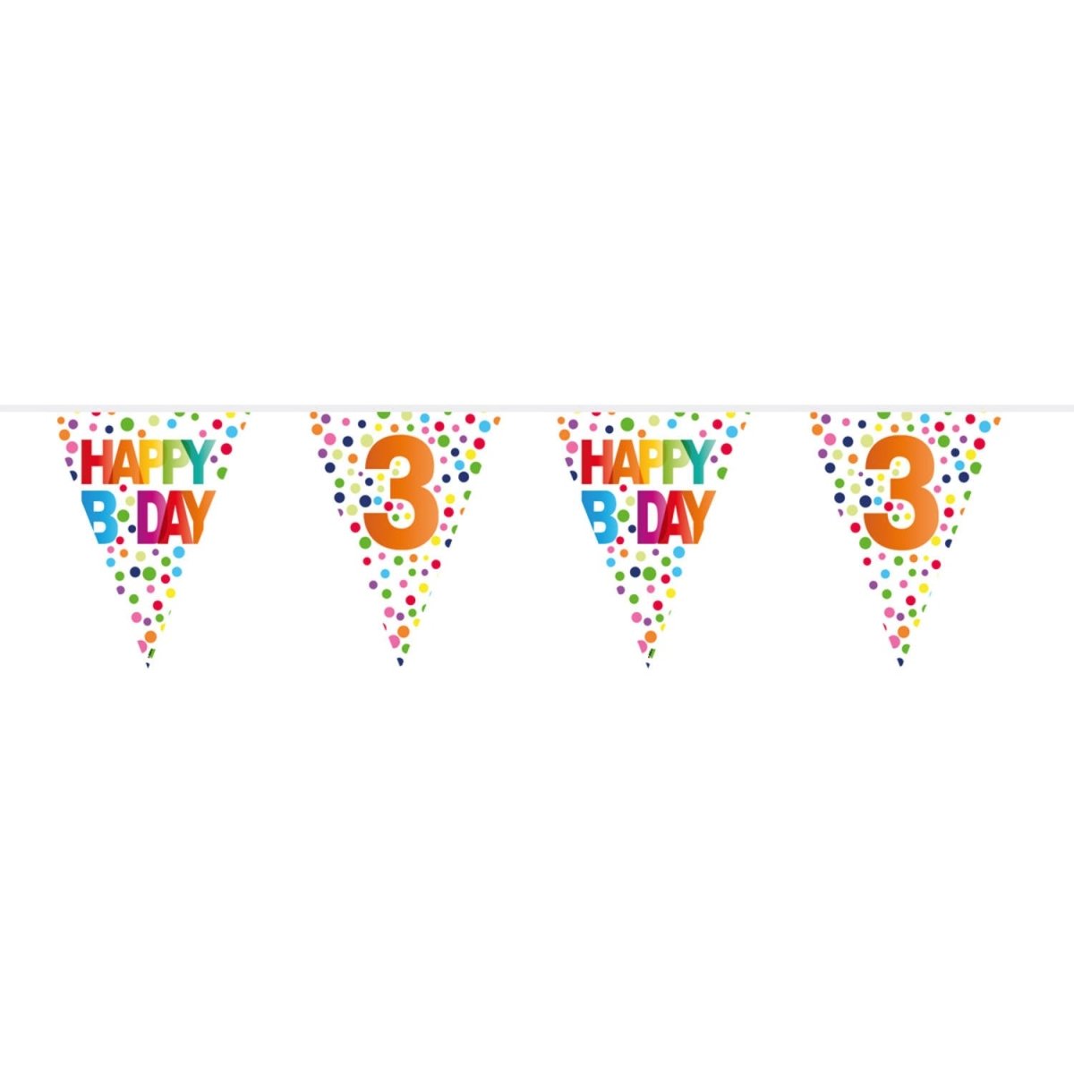 Ligne de drapeau Happy Bday Dots de 3 ans - 10 mètres. Contenu : 1 ligne de drapeau. Couleur : multicolore. A utiliser par exemple lors des fêtes/occasions suivantes : Anniversaire, Fête des enfants et Anniversaire. Cette ligne de drapeaux a une longueur de 10 mètres. L'article est fabriqué en plastique.