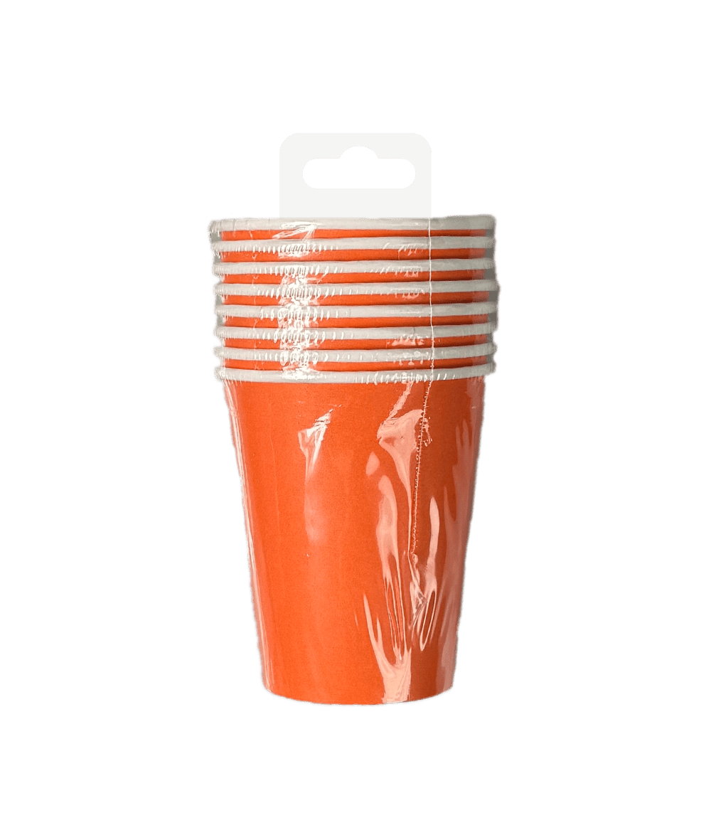 Les gobelets - orange sont les articles de décoration parfaits lors d'une fête dont le thème est la couleur orange. Ces gobelets mesurent 8,5 x 7 cm, sont emballés par 8 et s'accordent parfaitement avec les autres articles orange tels que les confettis, les serviettes, les assiettes, les nappes, les boîtes à goûter et la ligne de drapeaux. Présente ces articles ensemble pour que le client comprenne immédiatement en quoi consiste cette collection. Ces gobelets sont fabriqués en papier, ce qui en fait un choix écologique !
