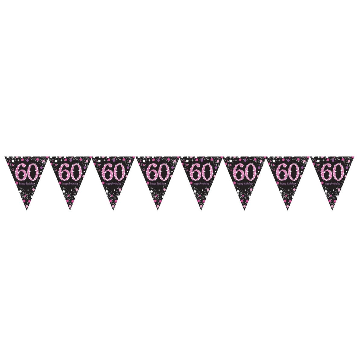 Guirlande 60 ans Joyeux anniversaire rose 4m