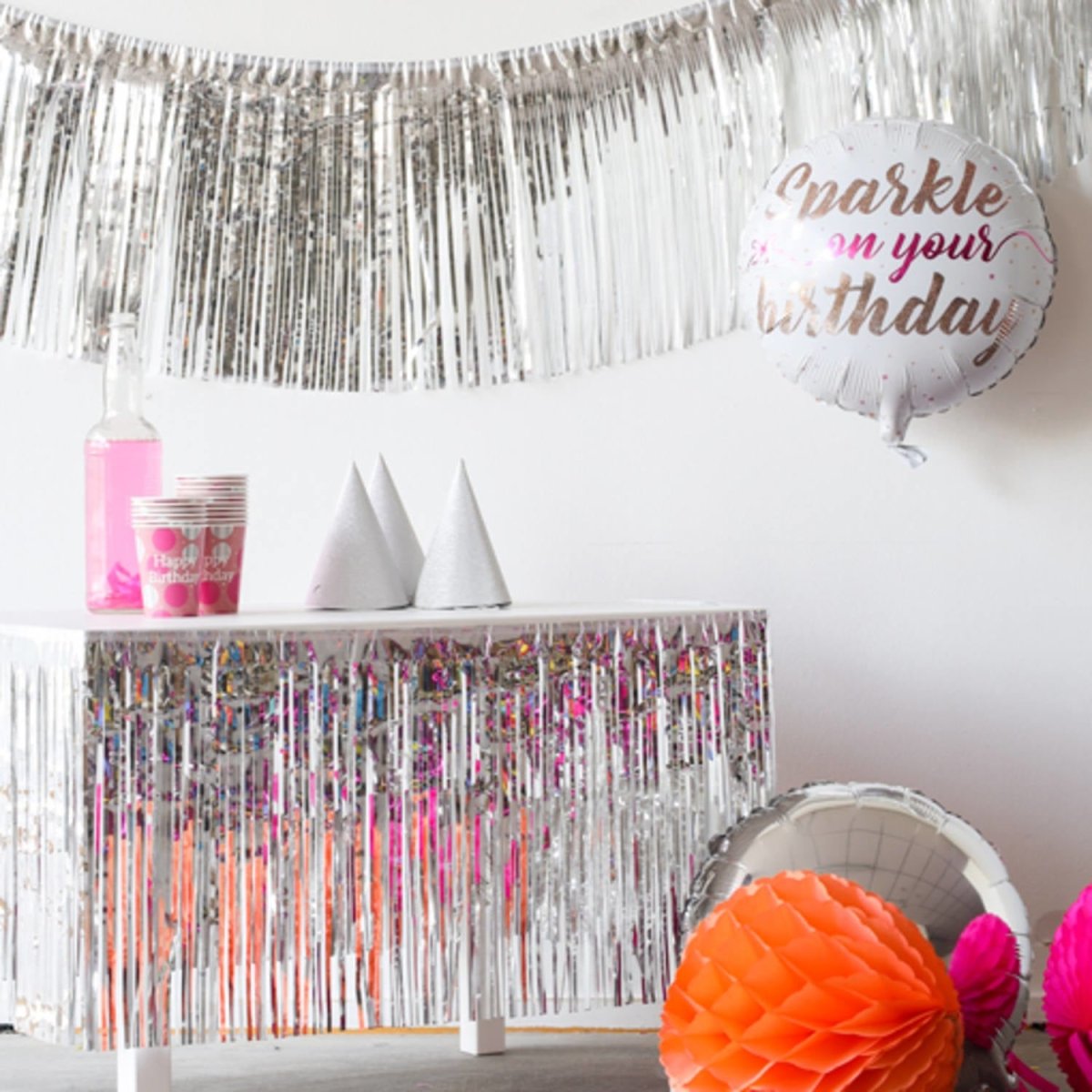 Grande guirlande à franges Argent - 6 mètres. Contenu : 1 guirlande. Couleur : couleur argentée. A utiliser par exemple lors des fêtes/occasions suivantes : anniversaire, anniversaire, réveillon. Cette guirlande a une longueur de 6 mètres. L'article est fabriqué en feuille d'aluminium.