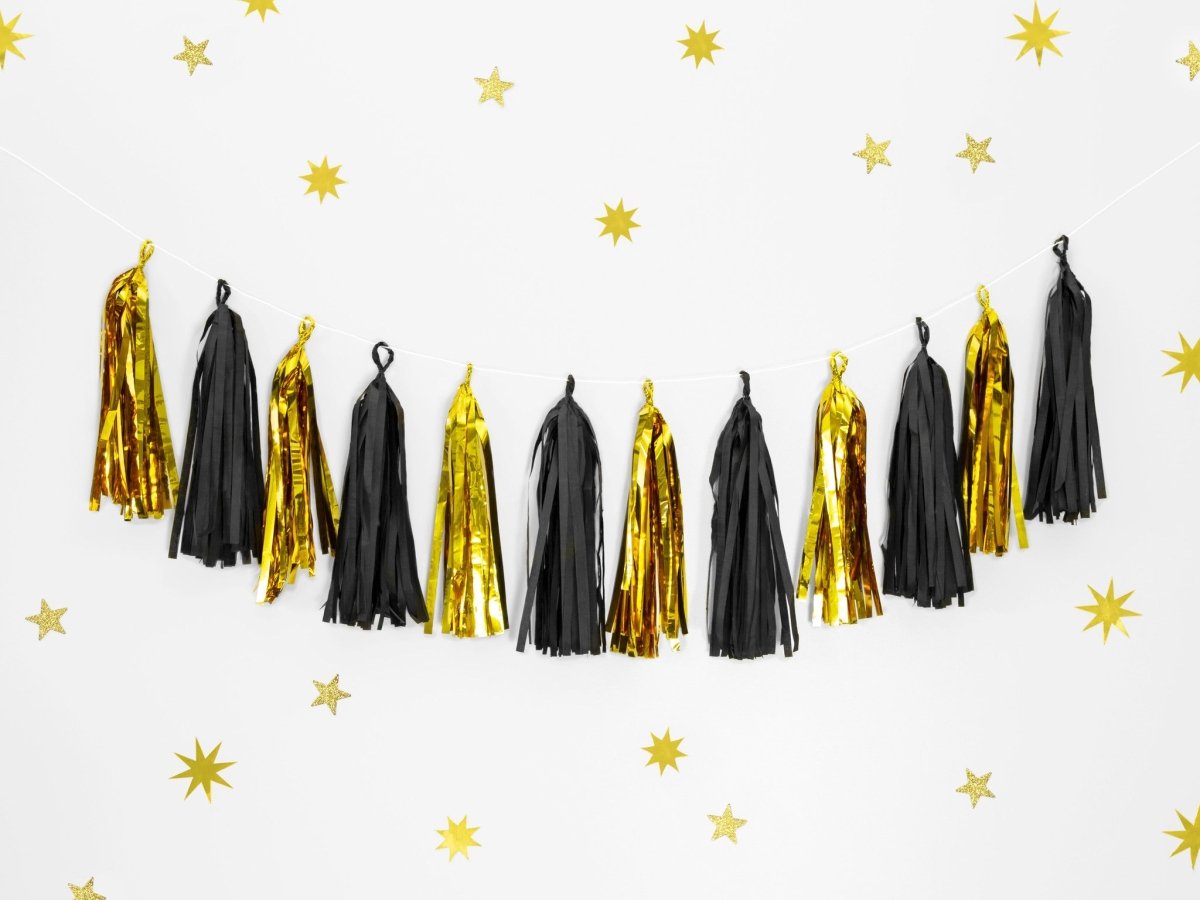 Contenu de l'emballage : Guirlande de glands Noir or 2m