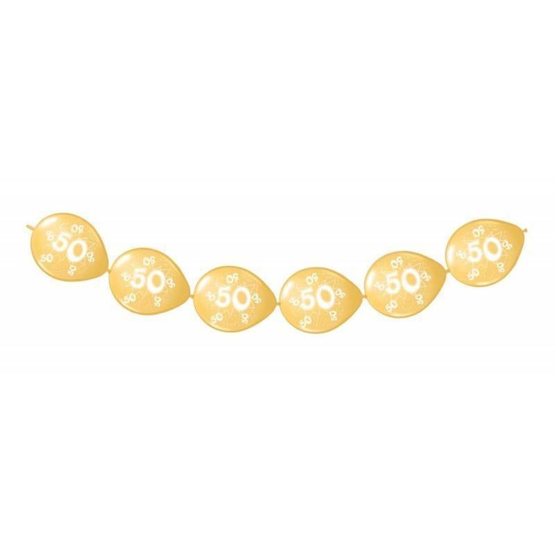 Boutons de baudruche anniversaire 50 ans - 3 mètres. Contenu : 8 ballons en latex. A utiliser par exemple lors des fêtes/occasions suivantes : anniversaire, anniversaire. La guirlande mesure 3 mètres de long et les 8 ballons mesurent 10 pouces/25 cm. L'article est fabriqué en latex.