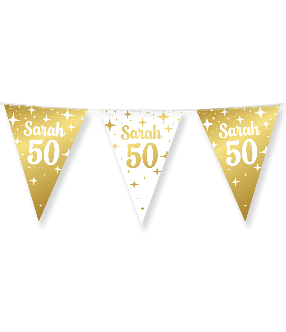 Les Fancy Party Flags foil - Sarah 50 peuvent être parfaitement combinés avec nos ballons assortis ainsi qu'avec d'autres articles de fête de notre large gamme, afin que tu puisses créer sans effort une atmosphère festive et élégante.