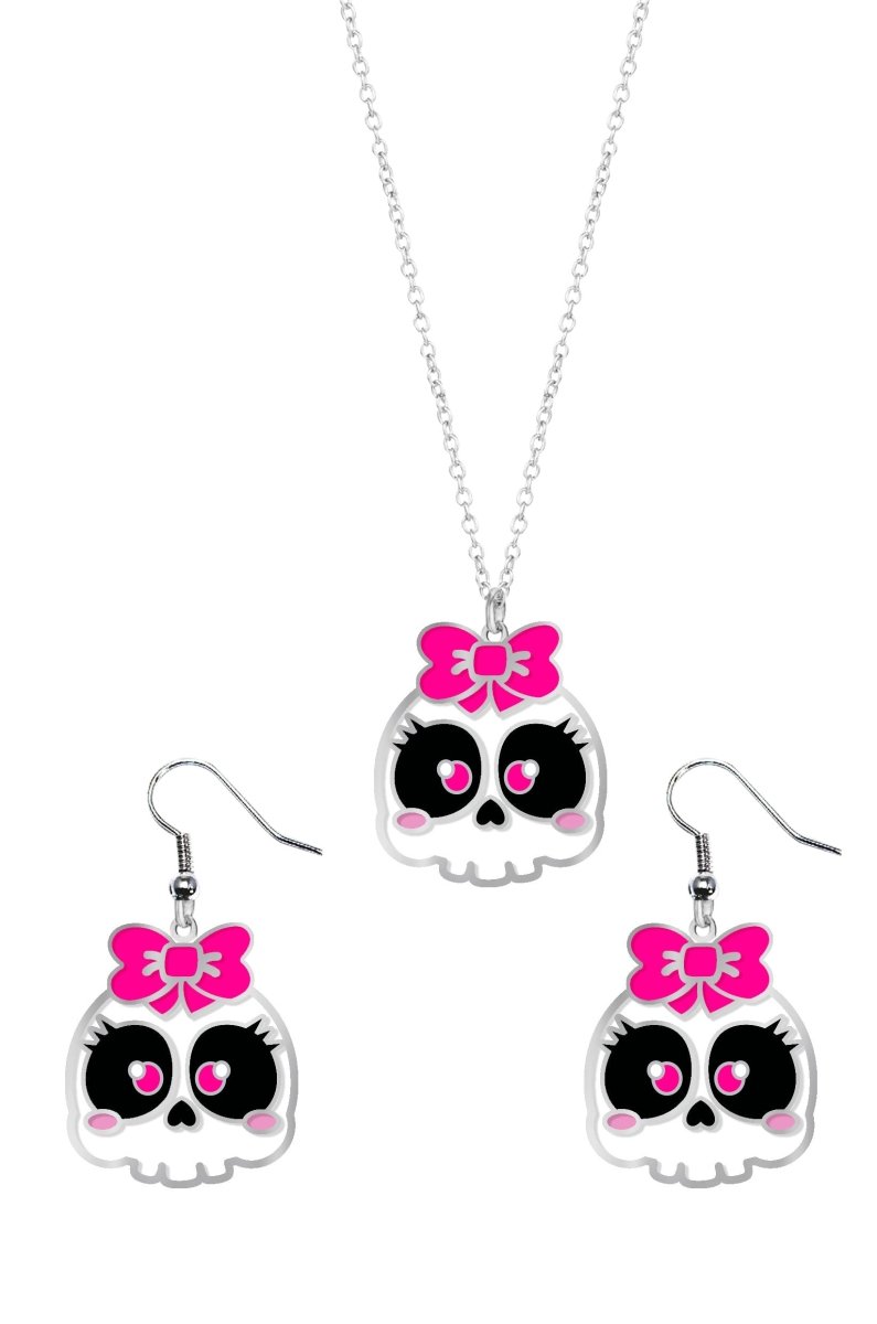 Ensemble d'accessoires d'Halloween Collier et boucles d'oreilles tête de mort