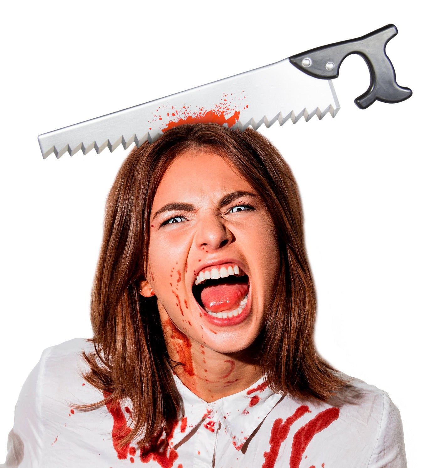 Nep Scie à travers la tête. Contenu : 1 diadème. Couleur : gris. Par exemple, à utiliser lors des fêtes/occasions suivantes : Halloween, Carnaval et Fête à thème. Size : Size unique. L'article est fabriqué en plastique.
