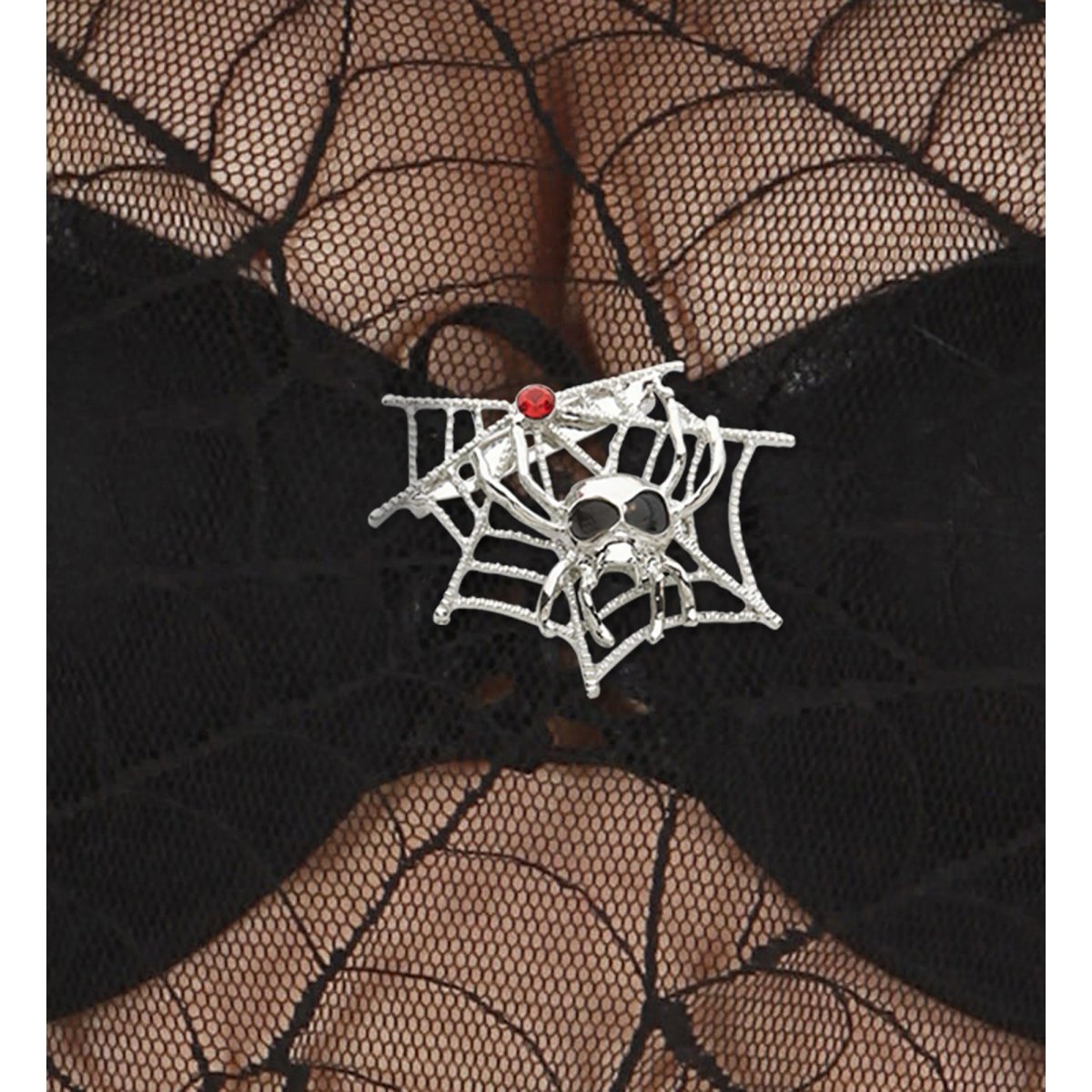 Ajoute un détail effrayant à ta tenue avec cette broche en toile d'araignée d'Halloween.