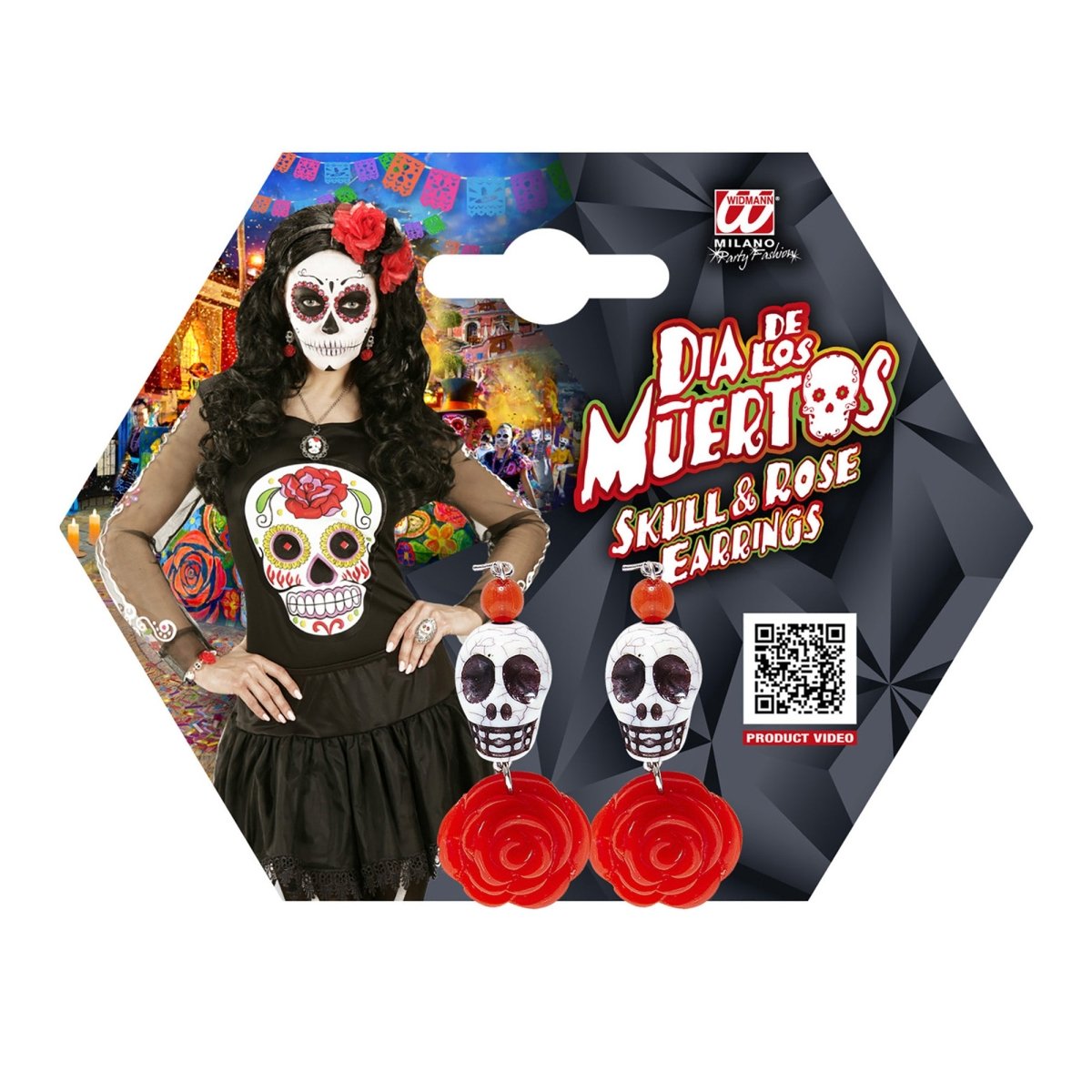 Boucles d'oreilles Halloween Crânes rouges et blancs avec rose